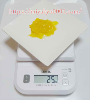 ↑はオレンジ味ですが、25gとなります。食パン1枚に乗せると結構たっぷりな印象なので、普通量だと20gくらいになるのではないかと思います。